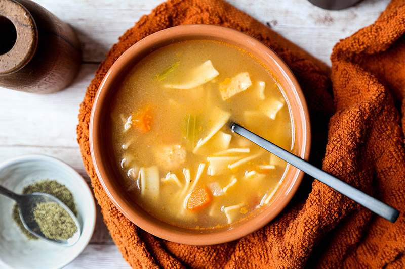 Ăn súp gà xé bí đỏ sẽ giúp tránh tác hại của việc ăn tối muộn (Ảnh: Sưu tầm Internet)